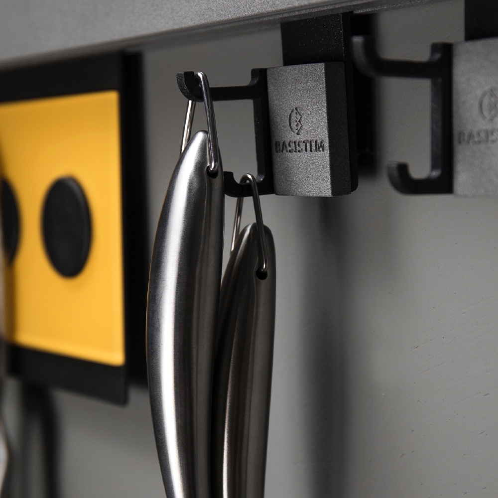 سری Bern با ترکیب تضاد رنگهای زرد انبهای و مشکی مرواریدی، سرزندگی و طراوت را به آشپزخانه شما میآورد. قلابهای دوتایی این سری، طراحی شدهاند تا نهایت استفاده را از فضای آویز داشته باشند؛ با امکان آویزان کردن همزمان از بالا و پایین، بدون ایجاد تداخل. این ویژگی به شما اجازه میدهد بیشترین بهرهوری را از فضای محدود بین کابینتها به دست آورید و هر وسیله کوچک یا بزرگ را در دسترس نگه دارید.