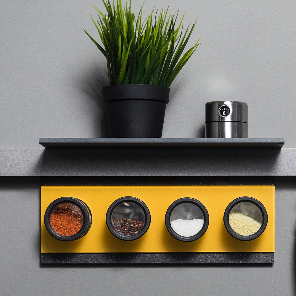 جا ادویه مگنتی Bern بخشی از سیستم دیواری Basistem است که با هدف فعالسازی فضای بین کابینت طراحی شده است. این محصول کمک میکند ادویههای پرکاربرد دقیقاً در محدوده عملکرد شما و کنار اجاق گاز قرار بگیرند؛ بدون نیاز به باز و بسته کردن مداوم کابینتها. هر یک از چهار مخزن دارای آهنربای قدرتمند در پشت خود است که به صفحه مغناطیسی متصل میشود. این صفحه روی پروفیل Bern نصب میشود و ساختاری ایمن، مقاوم و منظم ایجاد میکند. وجود ضربهگیر در پشت صفحه فلزی از برخورد مستقیم با دیوار جلوگیری کرده و کیفیت ساخت محصول را تکمیل میکند. علاوه بر نگهداری، مخازن امکان