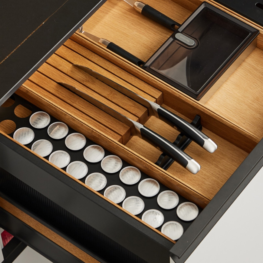 با افزایش مصرف قهوههای کپسولی در خانهها، نظمدهی به این کپسولها به یک نیاز واقعی تبدیل شده است. جعبه نظمدهنده کپسول قهوه Chur این نیاز را با رویکردی دقیق و زیباشناسانه پاسخ میدهد و کپسولها را به شکلی مرتب، در دسترس و چشمنواز در کشو قرار میدهد. نتیجه، کشویی منظمتر و تجربهای آرامتر در شروع هر روز است. این محصول بخشی از سیستم ماژولار سری Chur است و میتواند بهتنهایی یا در کنار سایر نظمدهندههای این سری استفاده شود. استفاده از چوب بلوط سفید آمریکای شمالی با پوشش روغن موم مخصوص مواد غذایی، حس طبیعی، ایمن و ماندگاری را به فضای آشپزخانه یا کافیبار منزل میآورد. نظمی که هم کاربردی است و هم به زیبایی فضا کمک میکند.