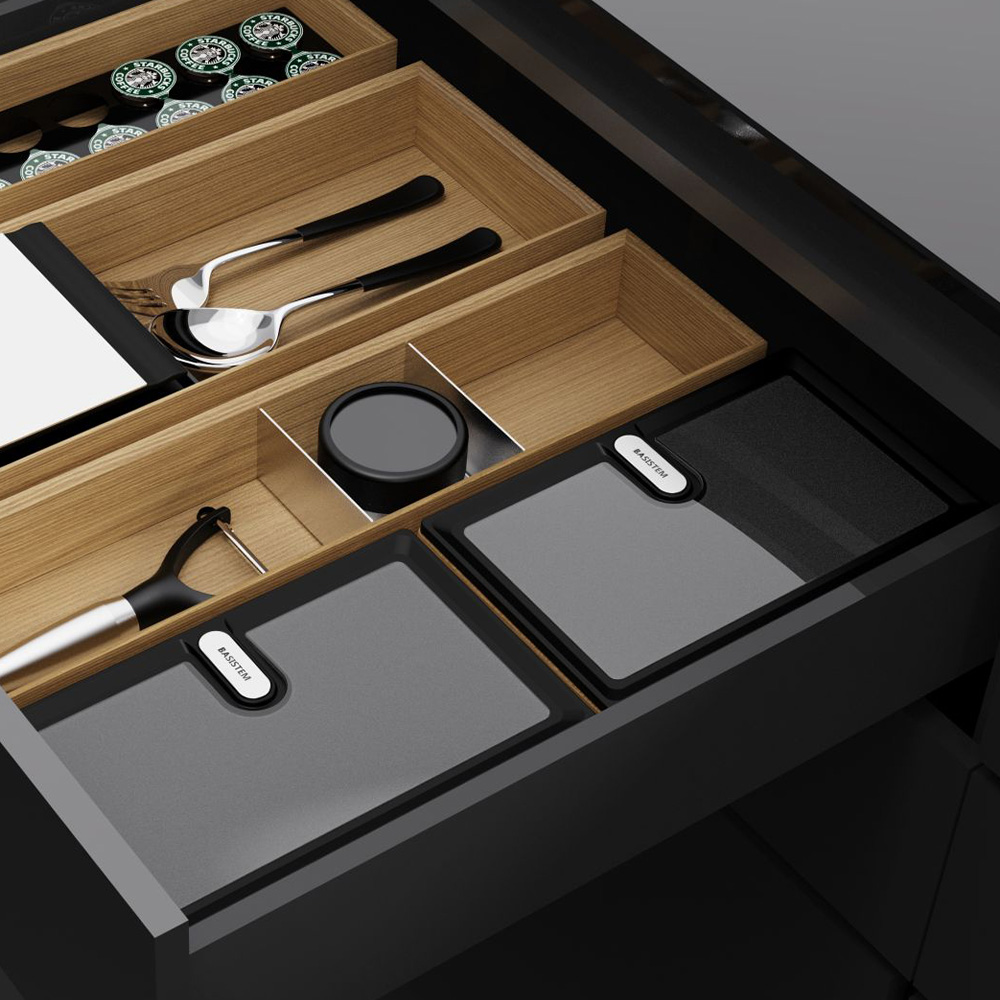 سری Chur بهعنوان نمادی از نظم حرفهای در آشپزخانه، اهمیت ویژهای به هر جز کوچک میدهد. جعبه نظمدهنده در دار دبل، با ساختار چوبی مرغوب و دو ظرف پلاستیکی باکیفیت در دار، به شما امکان میدهد اقلام حساس و کوچک را بهخوبی محافظت و بهصورت منظم نگهداری کنید. این ترکیب کاربردی، پاسخگوی نیاز آشپزخانههای حرفهای و مرفه است که به دنبال نظم و زیبایی همزمان هستند. طراحی ماژولار Chur امکان قرار دادن این جعبه را در کشوهای با عمق ۴۵ یا ۵۰ سانتیمتر میدهد و میتوان آن را بهصورت جداگانه تهیه و با سایر نظمدهندهها ترکیب کرد. این محصول بهخوبی با انواع کشو و ریل سازگار است و فضای آشپزخانه را به محیطی آرام، مرتب و کارآمد تبدیل میکند.