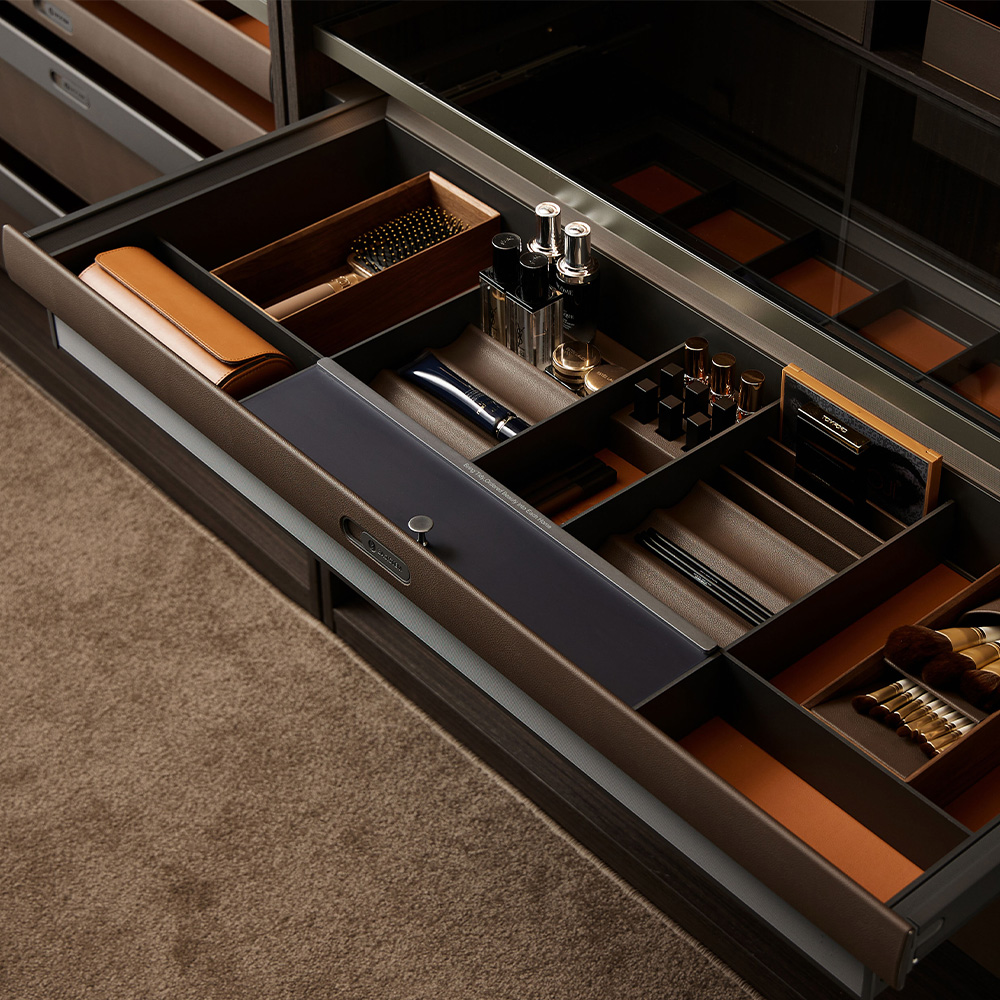 جعبه لوازم آرایش Lugano پاسخی هوشمند به نیاز نظمدهی وسایل شخصی در کمد است؛ محصولی که همزمان نقش یک عنصر دکوراتیو و کاربردی را ایفا میکند. ترکیب چرم و جیر، علاوه بر ایجاد حس لوکس، به فضا گرما و هماهنگی بصری میبخشد و آن را به انتخابی محبوب برای طراحان داخلی تبدیل میکند. دستگیرههای متصل و همجنس با بدنه، استفاده از جعبه را ساده و روان میکند. این طراحی یکپارچه باعث میشود وسایل آرایشی و شخصی همیشه در دسترس، مرتب و محافظتشده باقی بمانند و کمد ظاهری منظم و حرفهای پیدا کند.