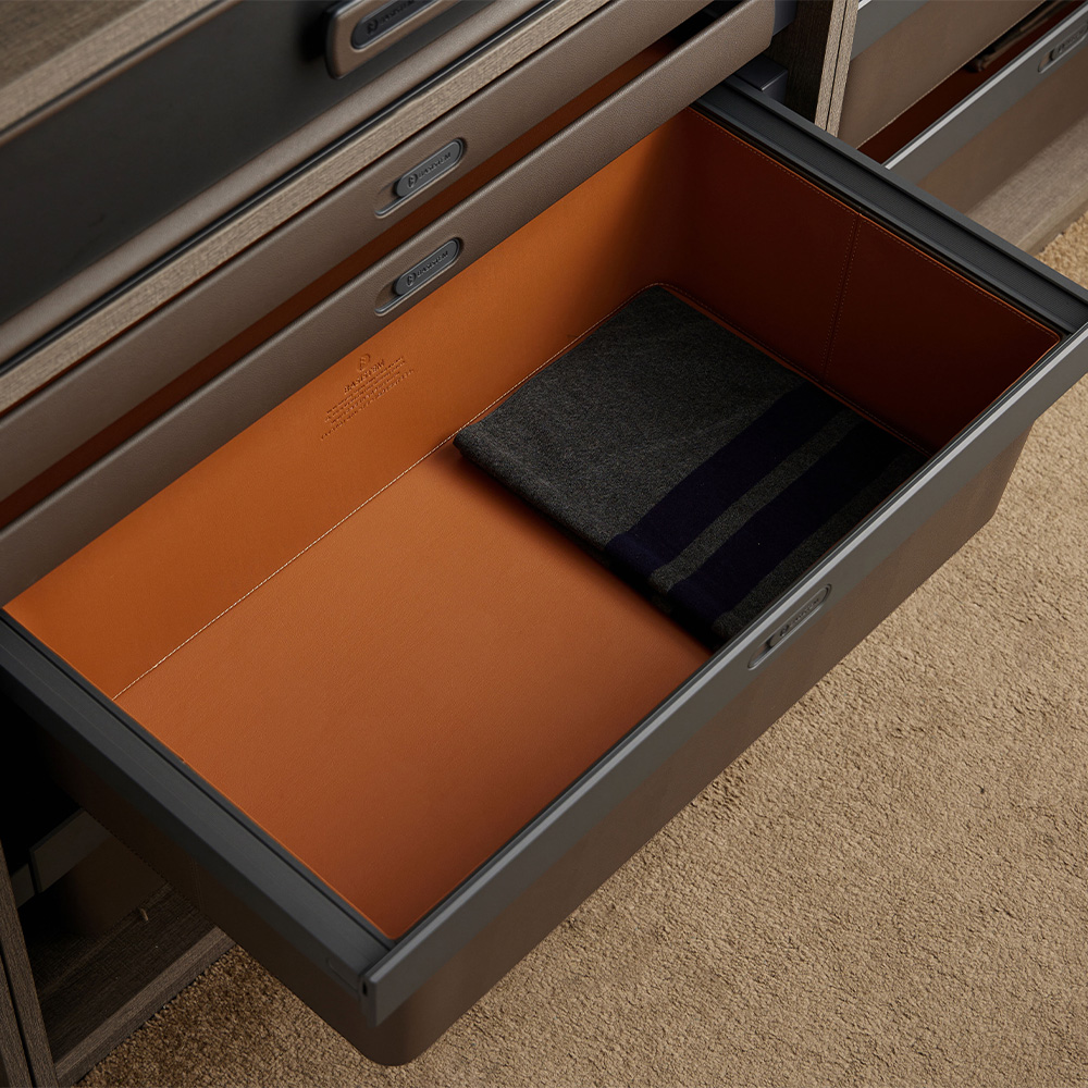 کشوی عمیق سری Lugano، عمیق‌ترین لایه‌ی نظم در کمدی است که هر روز به آن تکیه می‌کنید. ترکیبی از چرم اصیل، فلز مستحکم و حرکت نرم که نظم را به یک تجربه لوکس تبدیل می‌کند