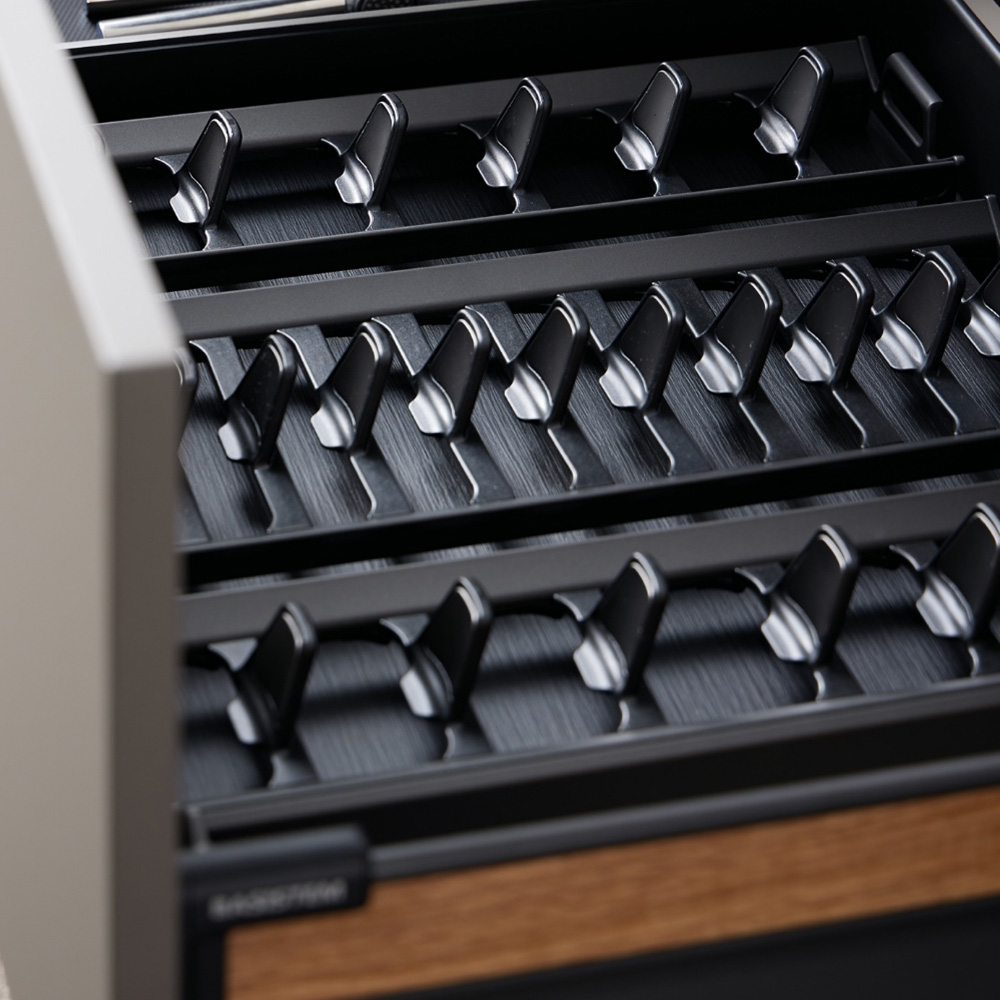 استند بشقاب Schiers، با الهام از نظم بینظیر صندلیهای تئاتر، بشقابها را به صورت منظم و ایمن کنار هم قرار میدهد. طراحی واحدهای قابل جابجایی، این امکان را به شما میدهد که چیدمان را متناسب با نیاز و اندازه بشقابها تنظیم کنید و از آسیب رسیدن به آنها جلوگیری نمایید. این محصول ترکیبی از کارایی و زیبایی است که فضای آشپزخانه شما را مرتبتر و جذابتر میکند و تجربه نگهداری بشقابها را ارتقا میدهد.